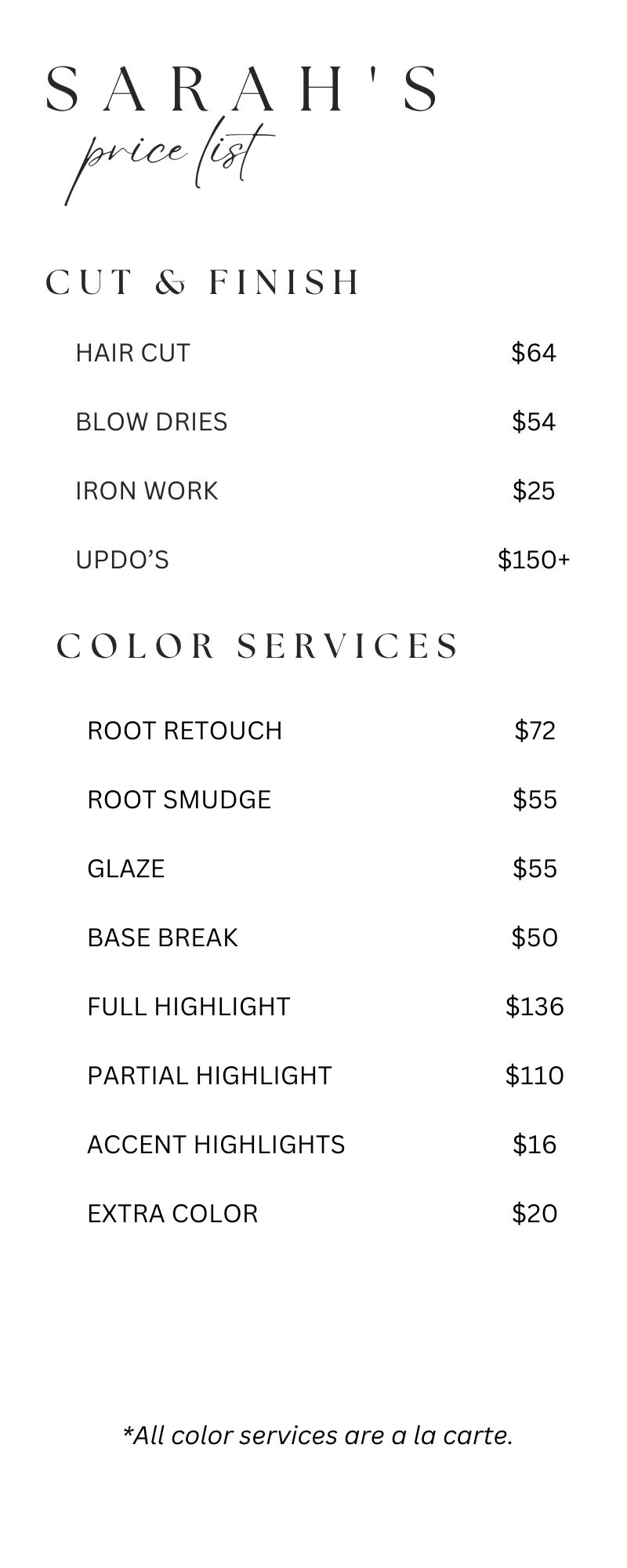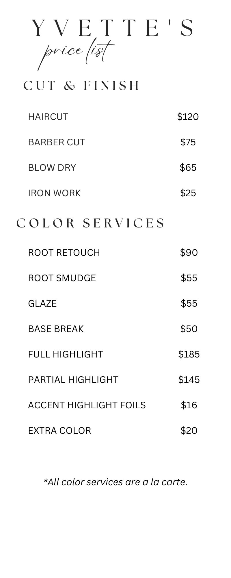Color Services: A $100 deposit is required to secure your appointment. This deposit will be applied to your service but is non-refundable if the appointment is canceled. We greatly appreciate your understanding and cooperation!